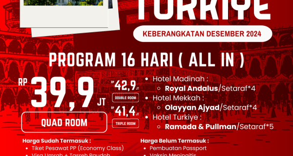 Umrah + Turkiye 16 Hari