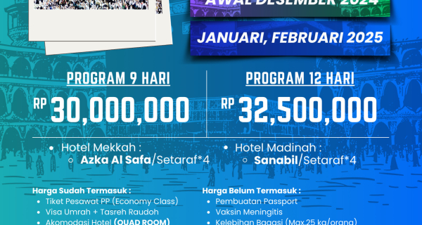 Umrah Awal Desember 2024, Januari dan Februari 2025 9 dan 12 Hari